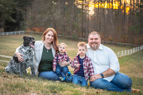 If you're like me, your pets are a huge part of your family! I often get asked, "can I bring my dog to my session?" It's a reasonable question and as a huge animal lover I always want to shout YASSS QUEEEN! But when I put my professional photographer hat on, I struggle with that same enthusiasm. It's not that I don't want to do it for my clients, it's that it can be pretty difficult to execute perfectly. (So remind me gently dear client, nothing in life is prefect!) Here's more... In the past I've had tons of clients bring their dogs, and I love it. I love the idea of clients bringing their best paw-pals to be photographed! However, most of these moments don't make it into my portfolio because the truth is, it's hard to pull off! There's one family in particular that will always stand out. It's the Howell family pictured above. I photographed them on NYE in 2016. My business was new, so I had all kinds of newbie enthusiasm when they asked to bring their dog. This, coming from the lady who legitimately wanted to bring a kitten back from a tropical vacation; what can I say? I LOVE animals! So on this day, my loving wonderful clients brought their big, beautiful dog Rex with them. I was mesmerized by his expressive eyes, and soft fur! He was such a good boy! But, full disclosure - that session was a challenge! Rex, was in a new place, with new scents and with sprawling fields to explore. He wanted to spend his time exploring, not behaving for a stranger! Still, I managed to get a couple great photos. I even shot a few of just him (how could I resist?!) The next year my client contacted me with the sad news of Rex's passing. (yes, I cried!) When they had their session, they had no idea how meaningful the photos of Rex would be to them. It was one of the few moments they got truly good up-close photos with the whole family! They truly cherish the photos, and for me the decision to keep including the doggos in the photo was a no-brainer. Families who want their dogs should absolutely include them! But I would be remiss if I didn't give you the down and dirty to help you make a decision! Below is one of 30+ outtakes of my own family photo, circa de 2018. As you can see, our two dogs were not at all willing to participate! After countless (and I mean about 30) tries, we did manage to get a decent photo of all of us! However, the amount of time it took really wore the younger kids out. They were just over it. From there, the session spiraled. The photographer, my dear friend Amy was a saint to keep trying though - I'll give her that! In the end, including the dogs far surpasses planning outfits and getting everyone to appear like the happiest family on earth! It's a special kind of frustrating. (hello, worth it but hard!) My dogs were distracted by the process! Think about how often do we sit in the front yard, shoulder to shoulder and all face the same direction...I'll tell you - never! It's not weird for us humans, but dogs must think we are out of our minds! Most of the time our dogs are sitting in front of us, facing us and communicating with their cute little tails, right? Still, I cherish our family photo with our dogs because the tragedy of owning pets is that they aren't here for our lifetime; only theirs! But before I make you cry thinking about the rainbow bridge, let's break down what a session is like if you decide you just have to bring your pup! Remember that in the example below, these dogs live here. They are used to the property, they guard and protect it and they know every inch of land. They're used to the mailman/UPS/Fed-ex, and used to neighborhood kids walking by. They see the same cars daily, but it's still distracting for them. They can sit on command, balance treats on their noses (and wait until I give them the "free" command to catch it), but despite being well-trained, they're still just animals. They don't understand anything outside of the realm of their normal, and they grossly feed on our energy. I've photographed roughly a dozen families with dogs in the past few years, and typically they have all behaved the same. Here is what to expect. When you arrive, you'll bring your dog out if you have a dog sitter (recommended), or leave the dog in the car until you are ready(weather permitting/Air Conditioning). Your dog will spend roughly 15 minutes wanting to explore once they are walked. Whether they're picking up on my cats & dogs, or they're smelling the deer that wander in the pasture (or everything really), this process of getting to know the area can take a while. Once they settle down, we can do our best to reign in your dog for photos. As eluded to above, I recommend having your dog join us toward the end of the session, while an "extra hand" type person walks your dog around the property to relax and get their sniffs out! (this will backfire if small children see your dog as they may want his/her attention).